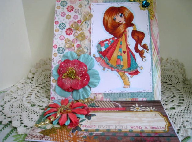 Copic Markers: skin E0000, 000, 00, 01 hair E21, 23 flower E50, 51 Y32, 35, V01